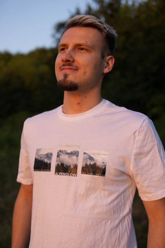 "Bergcollage" - Alpenglow T-Shirt mit Visual Print